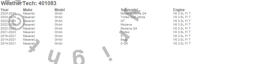 Below is an abbreviated list of applications for the Cargo Liner.Ghibli, Maserati, 2024, 2023, 2022, 2021, 2020, 2019, 2018, 2017, 2016, 2015, 2014