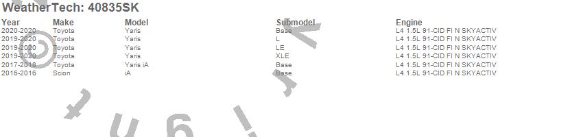 Below is an abbreviated list of applications for the Cargo Liner w/Bumper Protector.iA, Yaris, Yaris iA, Scion, Toyota, 2020, 2019, 2018, 2017, 2016