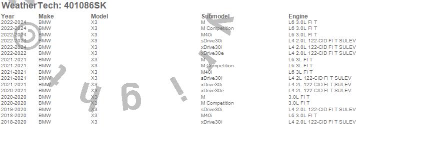 Below is an abbreviated list of applications for the Cargo Liner w/Bumper Protector.X3, BMW, 2024, 2023, 2022, 2021, 2020, 2019, 2018