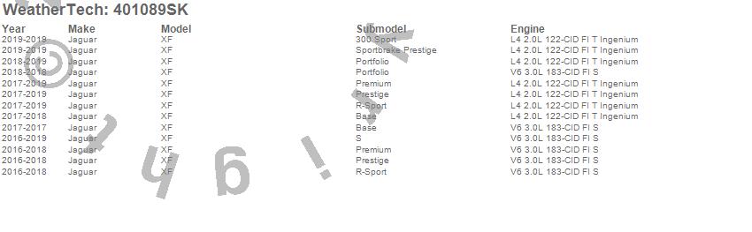 Below is an abbreviated list of applications for the Cargo Liner w/Bumper Protector.XF, Jaguar, 2019, 2018, 2017, 2016