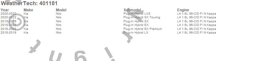 Below is an abbreviated list of applications for the Cargo Liner.Niro, Kia, 2022, 2021, 2020, 2019, 2018