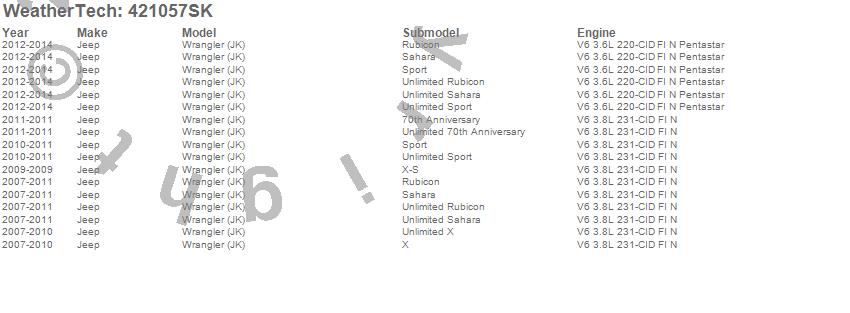 Below is an abbreviated list of applications for the Cargo Liner w/Bumper Protector.Wrangler (JK), Jeep, 2014, 2013, 2012, 2011, 2010, 2009, 2008, 2007