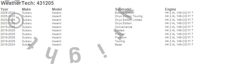 Below is an abbreviated list of applications for the Cargo Liner.Ascent, Subaru, 2026, 2025, 2024, 2023, 2022, 2021, 2020, 2019