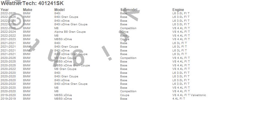 Below is an abbreviated list of applications for the Cargo Liner w/Bumper Protector.840i, 840i Gran Coupe, 840i xDrive, 840i xDrive Gran Coupe, Alpina B8 Gran Coupe, M8, M8 Gran Coupe, M850i xDrive, M850i xDrive Gran Coupe, BMW, 2026, 2025, 2024, 2023, 2022, 2021, 2020, 2019
