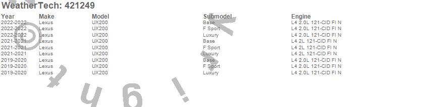 Below is an abbreviated list of applications for the Cargo Liner.UX200, Lexus, 2022, 2021, 2020, 2019