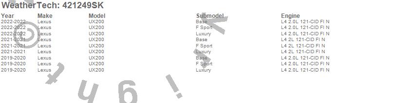 Below is an abbreviated list of applications for the Cargo Liner w/Bumper Protector.UX200, Lexus, 2022, 2021, 2020, 2019