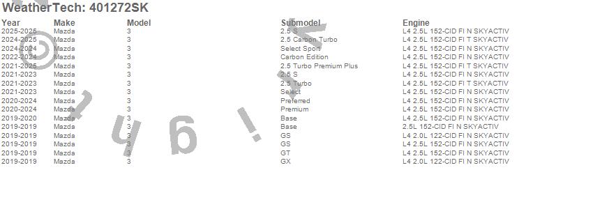 Below is an abbreviated list of applications for the Cargo Liner w/Bumper Protector.3, Mazda, 2025, 2024, 2023, 2022, 2021, 2020, 2019