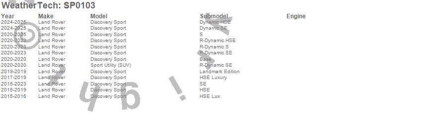 Below is an abbreviated list of applications for the Scratch Protection Film.Discovery Sport, Land Rover, 2025, 2024, 2023, 2022, 2021, 2020, 2019, 2018, 2017, 2016, 2015