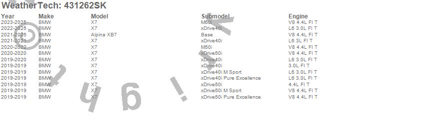 Below is an abbreviated list of applications for the Cargo Liner w/Bumper Protector.Alpina XB7, X7, BMW, 2025, 2024, 2023, 2022, 2021, 2020, 2019