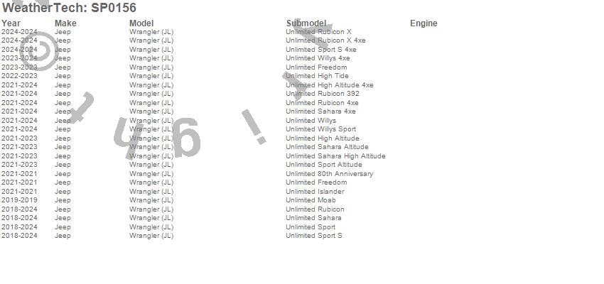 Below is an abbreviated list of applications for the Scratch Protection Film.Wrangler, Wrangler (JL), Jeep, 2026, 2025, 2024, 2023, 2022, 2021, 2020, 2019, 2018