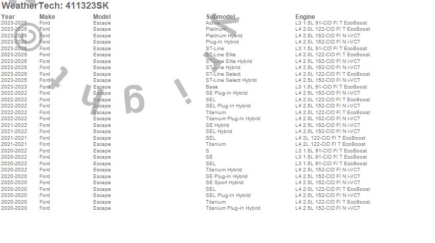 Below is an abbreviated list of applications for the Cargo Liner w/Bumper Protector.Escape, Ford, 2026, 2025, 2024, 2023, 2022, 2021, 2020