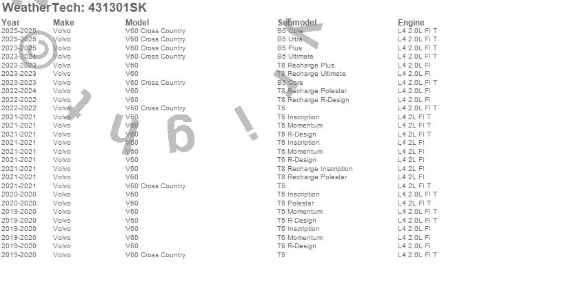 Below is an abbreviated list of applications for the Cargo Liner w/Bumper Protector.V60, V60 Cross Country, Volvo, 2025, 2024, 2023, 2022, 2021, 2020, 2019