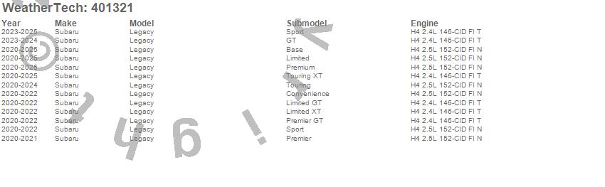 Below is an abbreviated list of applications for the Cargo Liner.Legacy, Subaru, 2025, 2024, 2023, 2022, 2021, 2020