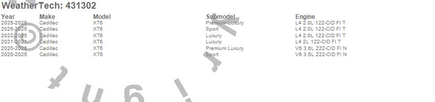 Below is an abbreviated list of applications for the Cargo Liner.XT6, Cadillac, 2025, 2024, 2023, 2022, 2021, 2020