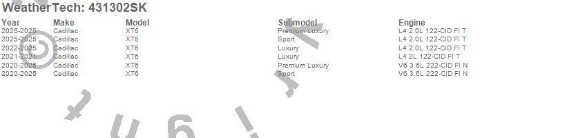 Below is an abbreviated list of applications for the Cargo Liner w/Bumper Protector.XT6, Cadillac, 2025, 2024, 2023, 2022, 2021, 2020