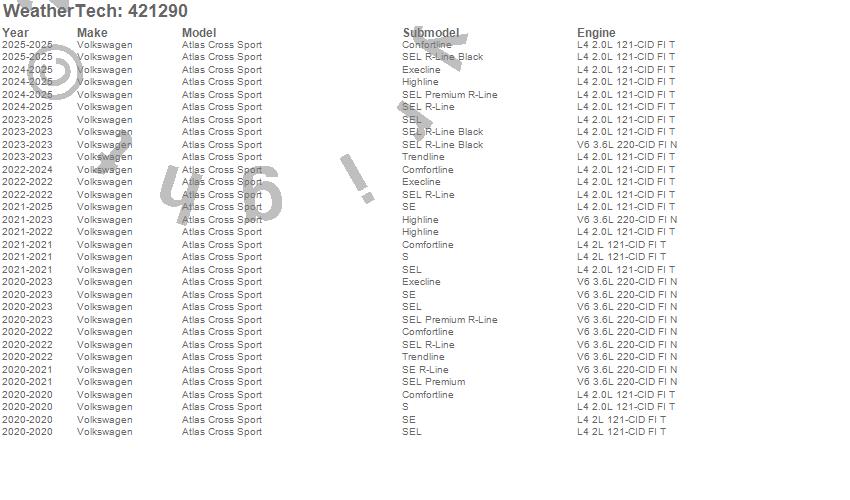 Below is an abbreviated list of applications for the Cargo Liner.Atlas Cross Sport, Volkswagen, 2026, 2025, 2024, 2023, 2022, 2021, 2020