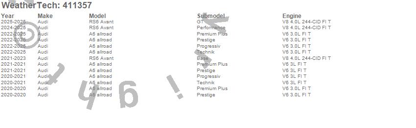 Below is an abbreviated list of applications for the Cargo Liner.A6 allroad, RS6 Avant, Audi, 2026, 2025, 2024, 2023, 2022, 2021, 2020