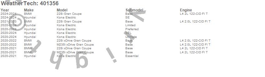 Below is an abbreviated list of applications for the Cargo Liner.228 xDrive Gran Coupe, 228i Gran Coupe, 228i xDrive Gran Coupe, Kona Electric, M235 xDrive Gran Coupe, M235i xDrive Gran Coupe, BMW, Hyundai, 2025, 2024, 2023, 2022, 2021, 2020