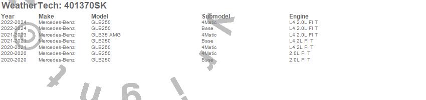 Below is an abbreviated list of applications for the Cargo Liner w/Bumper Protector.GLB250, GLB35 AMG, Mercedes-Benz, 2025, 2024, 2023, 2022, 2021, 2020