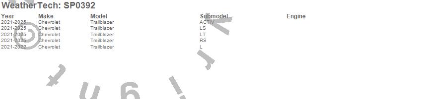 Brand: WeatherTechPart Number: SP0392Body Protection Film Type: TransparentUPC: 787765332118