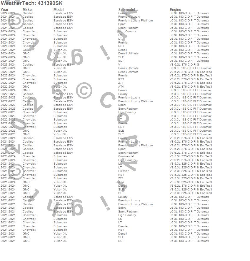 Below is an abbreviated list of applications for the Cargo Liner w/Bumper Protector.Escalade ESV, Suburban, Yukon XL, Cadillac, Chevrolet, GMC, 2026, 2025, 2024, 2023, 2022, 2021
