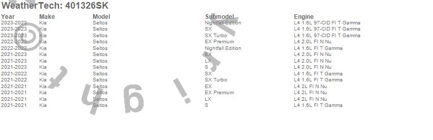Below is an abbreviated list of applications for the Cargo Liner w/Bumper Protector.Seltos, Kia, 2023, 2022, 2021