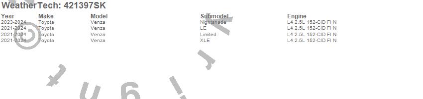 Below is an abbreviated list of applications for the Cargo Liner w/Bumper Protector.Venza, Toyota, 2024, 2023, 2022, 2021