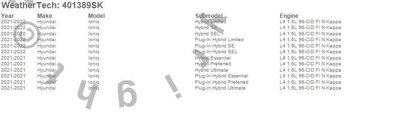 Below is an abbreviated list of applications for the Cargo Liner w/Bumper Protector.Ioniq, Hyundai, 2022, 2021, 2020