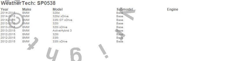 Below is an abbreviated list of applications for the Scratch Protection Film.320i, 320i xDrive, 328d, 328d xDrive, 328i, 335i, 335i GT xDrive, 335i xDrive, ActiveHybrid 3, BMW, 2015, 2014, 2013, 2012
