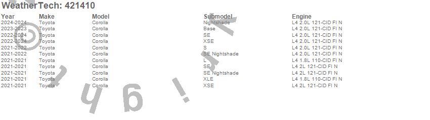 Below is an abbreviated list of applications for the Cargo Liner.Corolla, Toyota, 2024, 2023, 2022, 2021