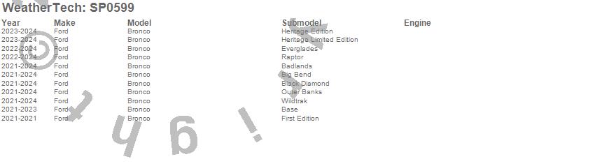 Brand: WeatherTechPart Number: SP0599Body Protection Film Type: TransparentUPC: 787765838849