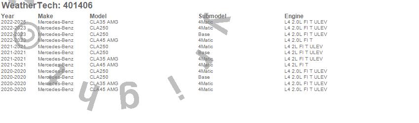 Below is an abbreviated list of applications for the Cargo Liner.CLA250, CLA35 AMG, CLA45 AMG, CLA45 AMG S, Mercedes-Benz, 2026, 2025, 2024, 2023, 2022, 2021, 2020