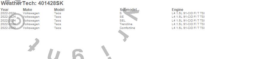 Below is an abbreviated list of applications for the Cargo Liner w/Bumper Protector.Taos, Volkswagen, 2025, 2024, 2023, 2022