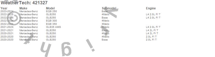 Below is an abbreviated list of applications for the Cargo Liner.EQB 250, EQB 250+, EQB 300, EQB 350, GLB250, GLB35 AMG, Mercedes-Benz, 2026, 2025, 2024, 2023, 2022, 2021, 2020