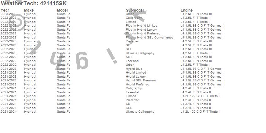 Below is an abbreviated list of applications for the Cargo Liner w/Bumper Protector.Santa Fe, Hyundai, 2023, 2022, 2021