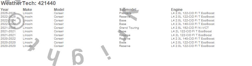 Below is an abbreviated list of applications for the Cargo Liner.Corsair, Lincoln, 2025, 2024, 2023, 2022, 2021, 2020