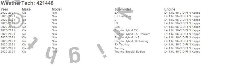 Below is an abbreviated list of applications for the Cargo Liner.Niro, Kia, 2021, 2020