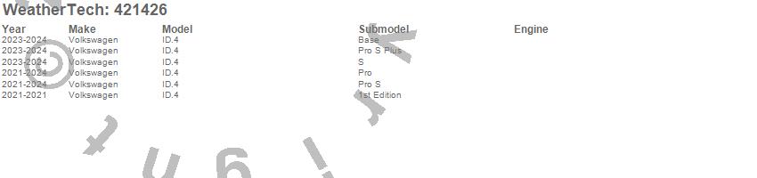 Below is an abbreviated list of applications for the Cargo Liner.ID.4, Volkswagen, 2025, 2024, 2023, 2022, 2021