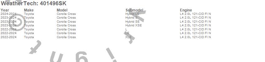 Below is an abbreviated list of applications for the Cargo Liner w/Bumper Protector.Corolla Cross, Toyota, 2026, 2025, 2024, 2023, 2022