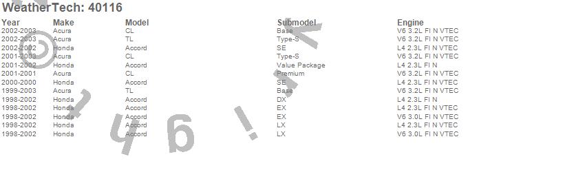 Below is an abbreviated list of applications for the Cargo Liner.Accord, CL, TL, Acura, Honda, 2003, 2002, 2001, 2000, 1999, 1998