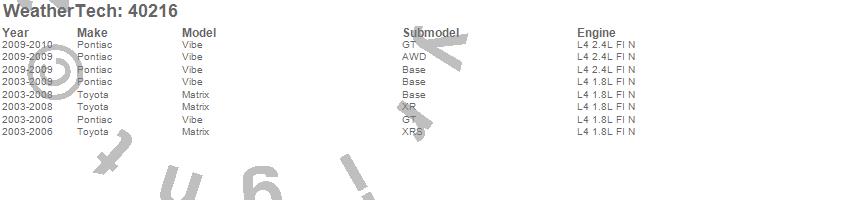 Below is an abbreviated list of applications for the Cargo Liner.Matrix, Vibe, Pontiac, Toyota, 2010, 2009, 2008, 2007, 2006, 2005, 2004, 2003