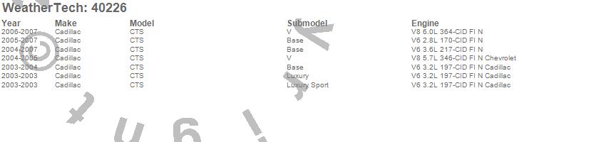Below is an abbreviated list of applications for the Cargo Liner.CTS, Cadillac, 2007, 2006, 2005, 2004, 2003