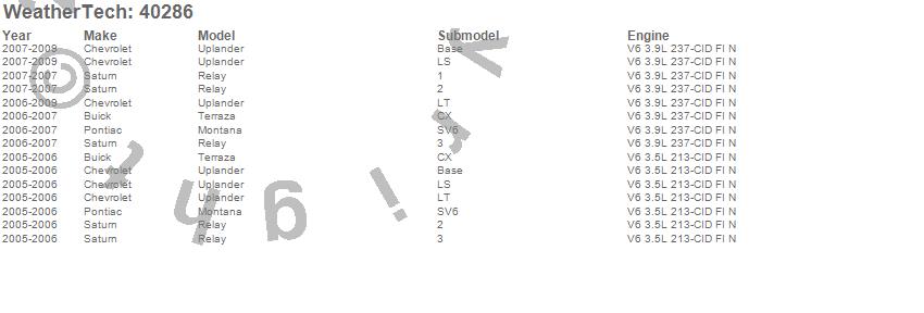 Below is an abbreviated list of applications for the Cargo Liner.Montana, Relay, Terraza, Uplander, Buick, Chevrolet, Pontiac, Saturn, 2009, 2008, 2007, 2006, 2005