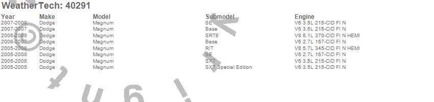 Below is an abbreviated list of applications for the Cargo Liner.Magnum, Dodge, 2008, 2007, 2006, 2005