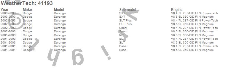Below is an abbreviated list of applications for the Cargo Liner.Durango, Dodge, 2003, 2002, 2001