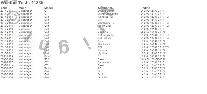Below is an abbreviated list of applications for the Cargo Liner.Golf, Golf R, GTI, R32, Rabbit, Volkswagen, 2014, 2013, 2012, 2011, 2010, 2009, 2008, 2007, 2006