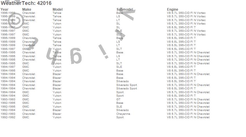 Below is an abbreviated list of applications for the Cargo Liner.Blazer, Tahoe, Yukon, Chevrolet, GMC, 1999, 1998, 1997, 1996, 1995, 1994, 1993, 1992