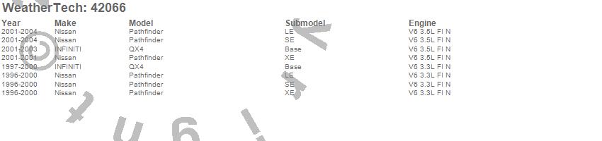 Below is an abbreviated list of applications for the Cargo Liner.Pathfinder, QX4, INFINITI, Nissan, 2004, 2003, 2002, 2001, 2000, 1999, 1998, 1997, 1996