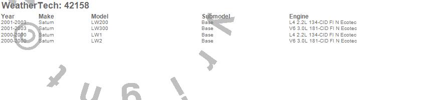 Below is an abbreviated list of applications for the Cargo Liner.LW1, LW2, LW200, LW300, Saturn, 2003, 2002, 2001, 2000