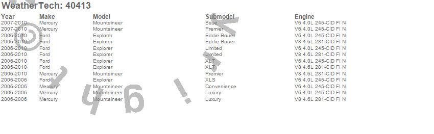 Below is an abbreviated list of applications for the Cargo Liner.Explorer, Mountaineer, Ford, Mercury, 2010, 2009, 2008, 2007, 2006